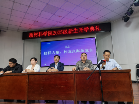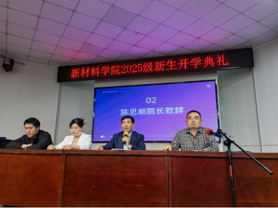 院长陈思顺教授以《逐梦新材料,启航新征程》为题致辞,强调新材料对国家科技发展的重要性,勉励新生夯实专业基础、勇于创新,将个人理想融入国家战略。他引用李白诗句"少年负壮气,奋烈自有时",激励学子把握青春时光,在新材料领域开拓进取。